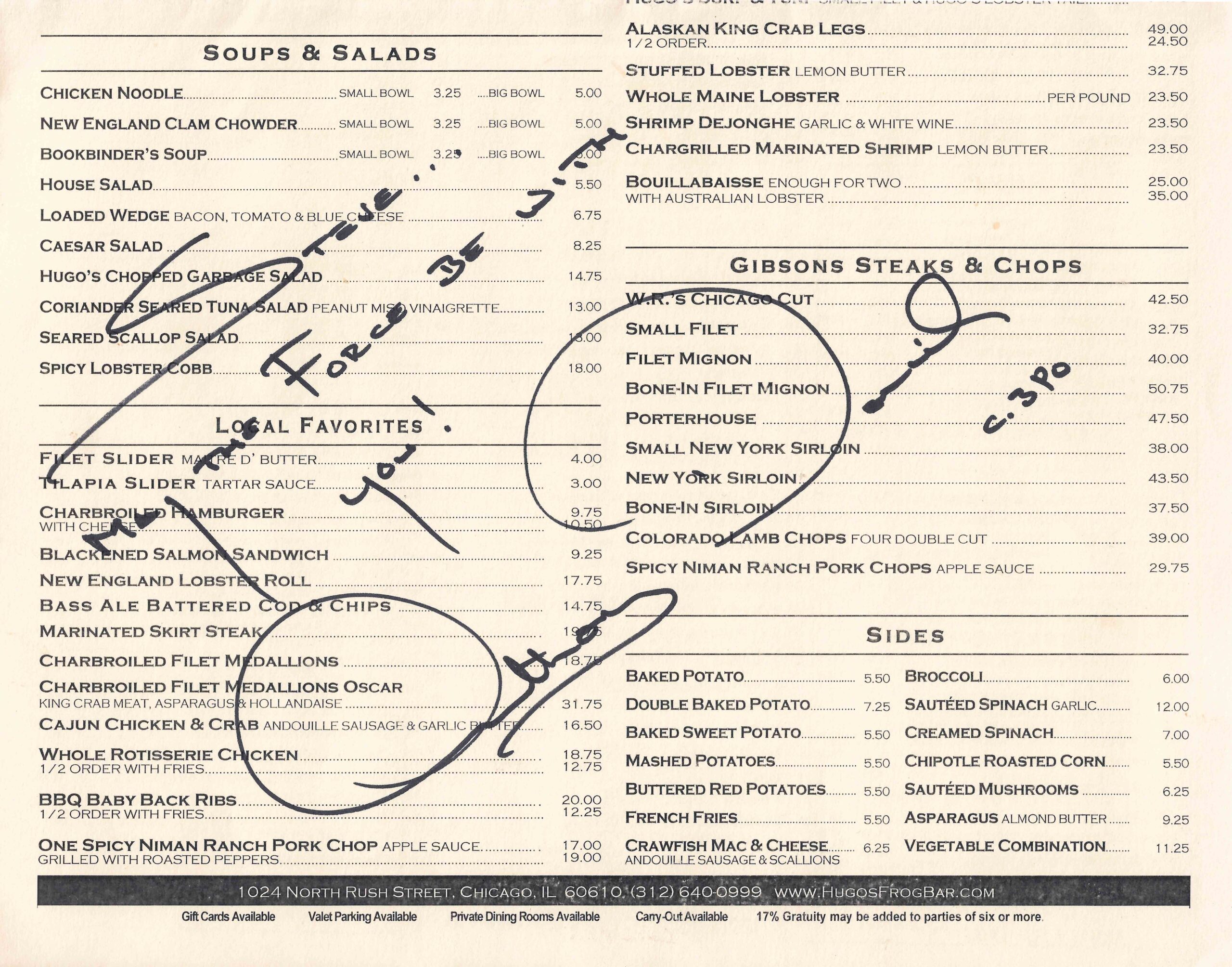 Restaurant menu autographed by Anthony Daniels, voice of C3PO, Star Wars. Acquired by a friend