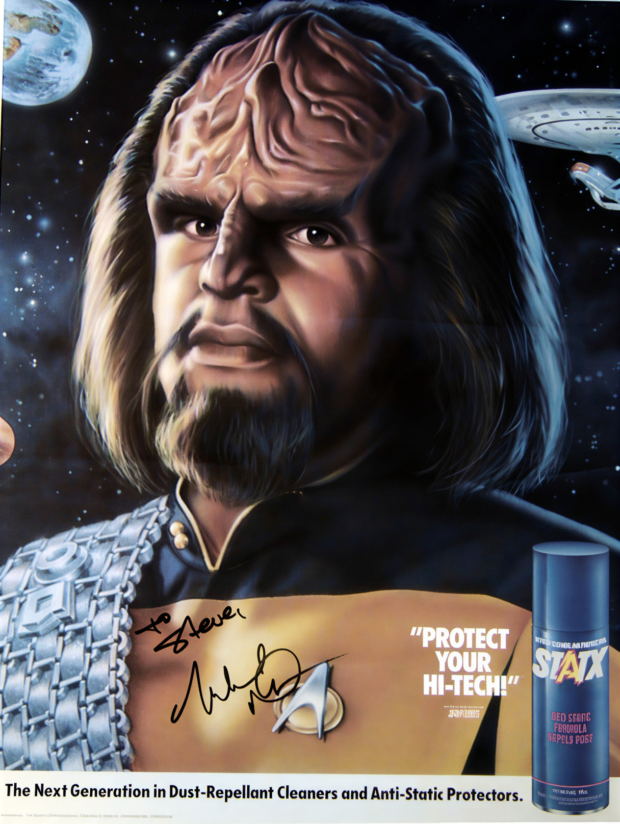 Michael Dorn as Worf, Star Trek The Next Generation. Autographed poster from Consumer Electronics Show